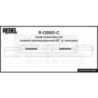 Купить Гриф олимпийский прямой хромированный 60″ REBEL с замками, нагрузка до 150 кг с доставкой по всей России.