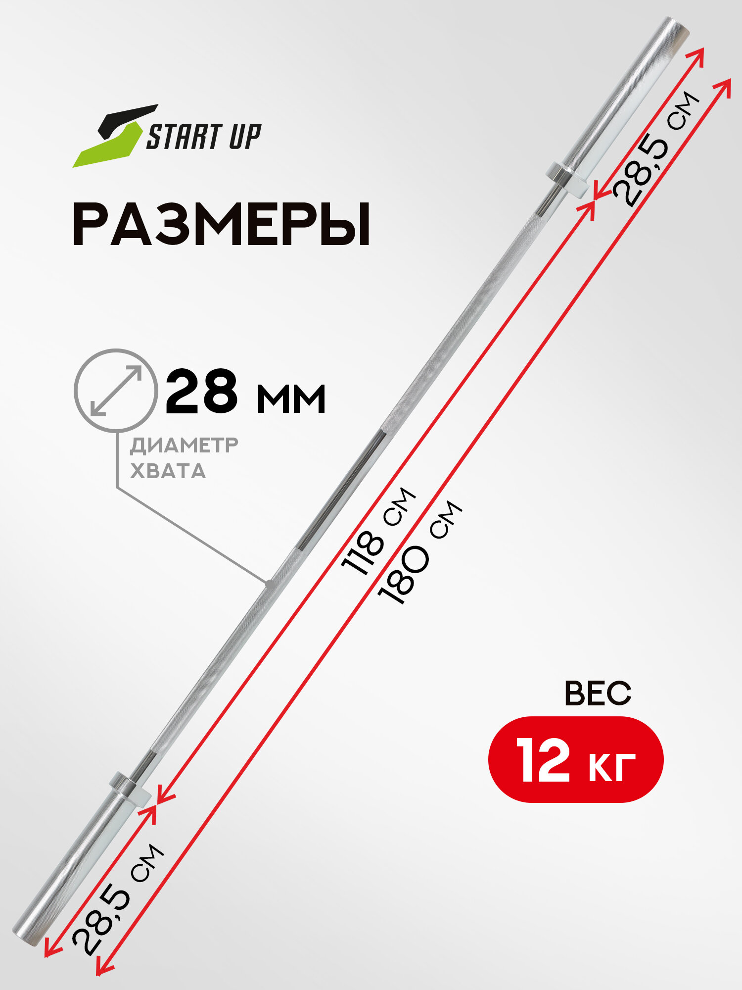 Вес грифа: 12 кг Длина посадочного стержня: 320 мм Примечание: без замков без подшипников, но посадочные стержни вращаются Длина грифа до упоров для дисков: 116 см Диаметр хвата грифа: 28 мм Материал: сталь Максимальная нагрузка: 200 кг