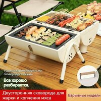 Гриль-барбекю PAILIR, нержавеющая сталь, двусторонний, портативный, бездымный, белый