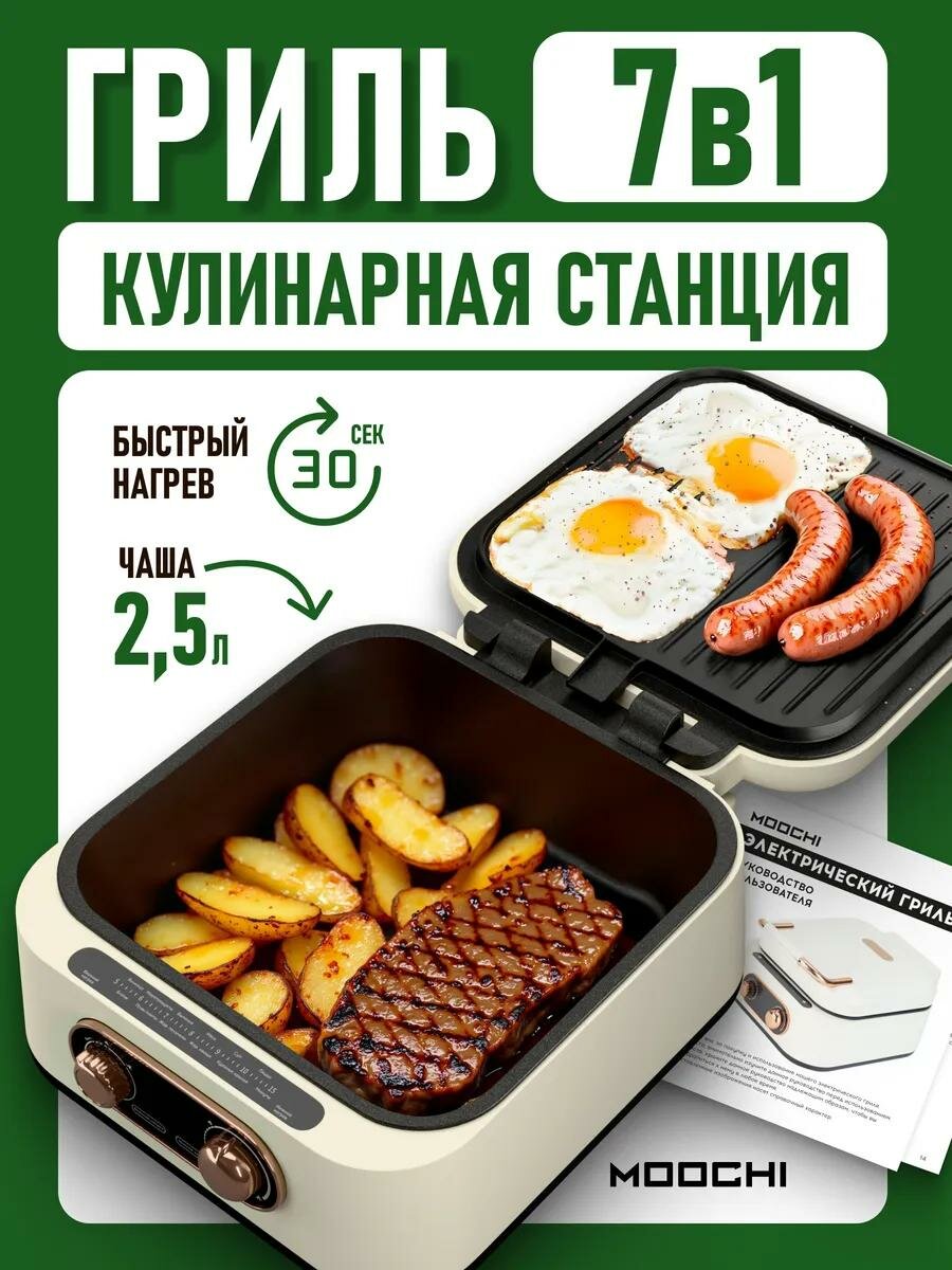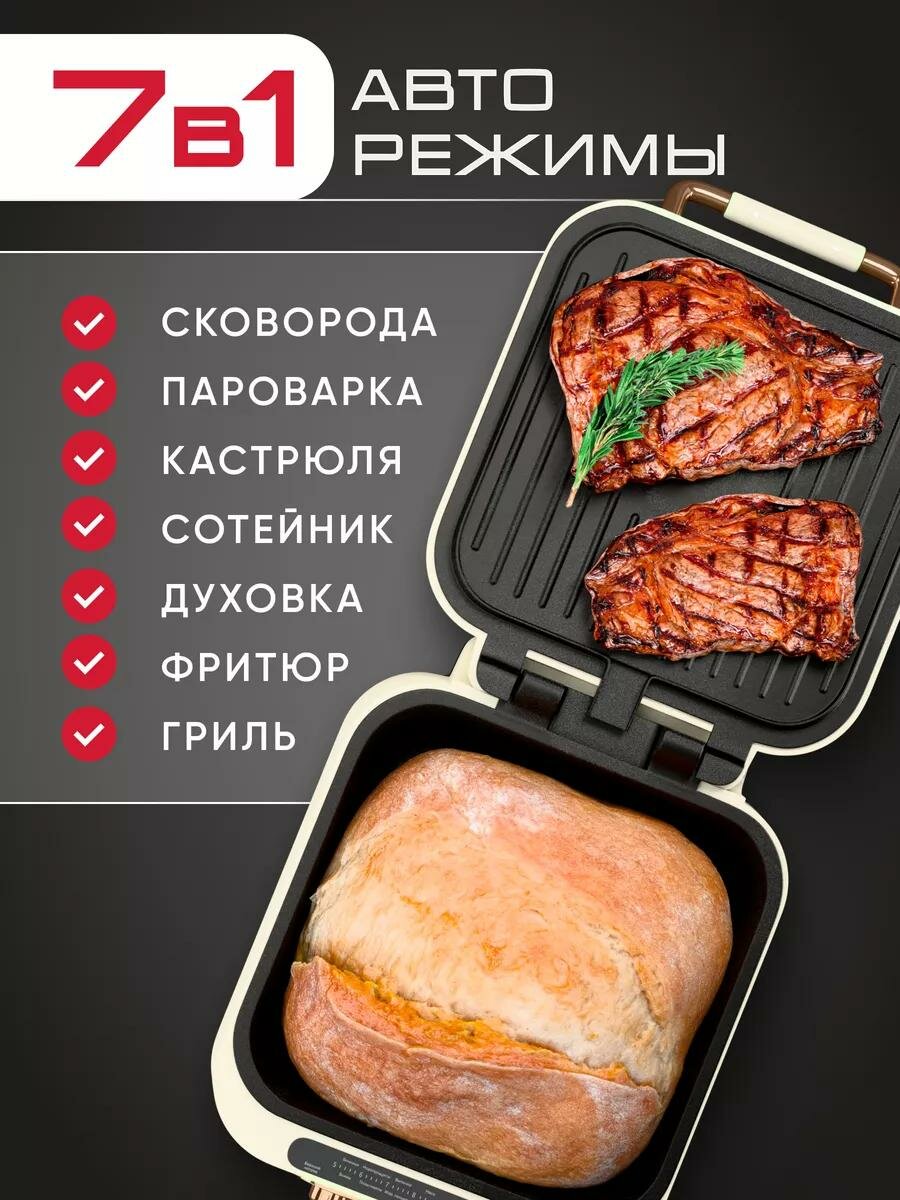 Гриль электрический 7в1, многофункциональный, с раздельной регулировкой антипригарных панелей и открытием 180°, 1800 Вт: сравнение цен, характеристики, фото, актуальное наличие и цены.