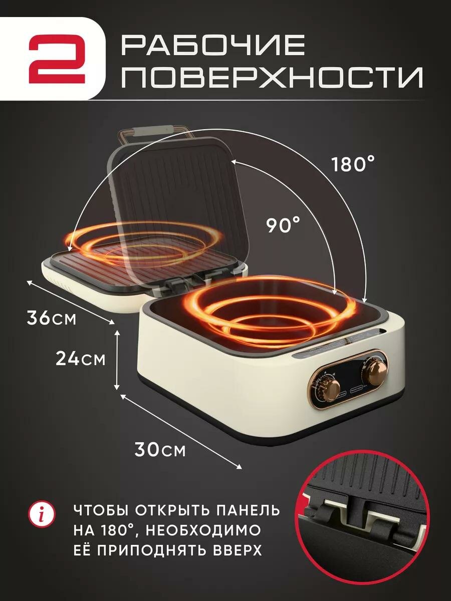 Купить Гриль электрический 7в1, многофункциональный, с раздельной регулировкой антипригарных панелей и открытием 180°, 1800 Вт с доставкой по всей России.