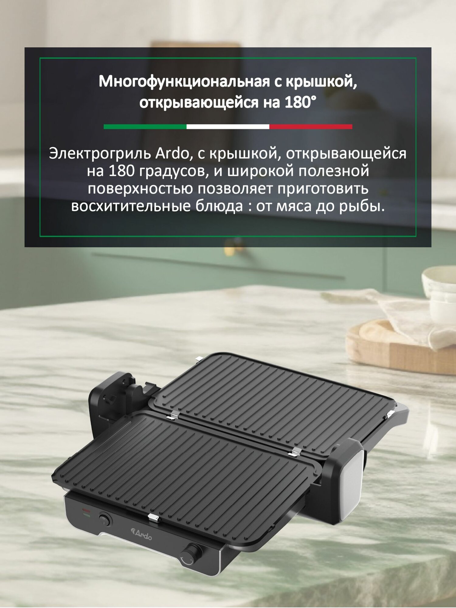 Купить Гриль электрический Ardo со съемными антипригарными пластинами 1800 Вт с регулировкой температуры бутербродница черный с доставкой по всей России.