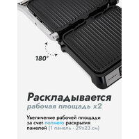 | Особенности | антипригарное покрытие, контактный гриль, поддон для сбора жира, регулировка высоты верхней панели, съемные пластины |