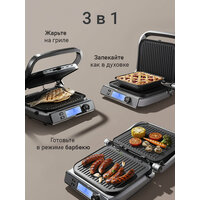 В этом режиме гриль заменит мангал — просто раскройте его на 180° и готовьте на обеих панелях одновременно. Это позволит не только сделать большую порцию еды за раз, но и готовить разные блюда одновременно: например, мясо на одной панели, а овощи — на второй.