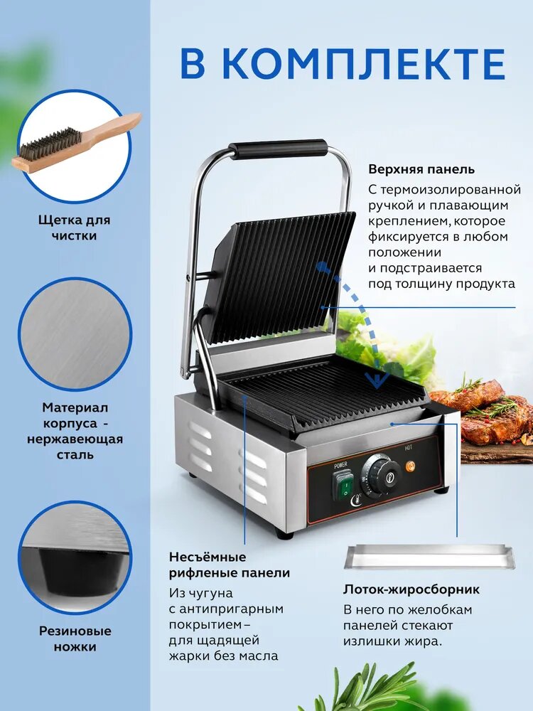 Купить Гриль Gastrorag «NPL-EGD10E», 31x21x36,2 см, антипригарный, серебристый, 1800Вт с доставкой по всей России.