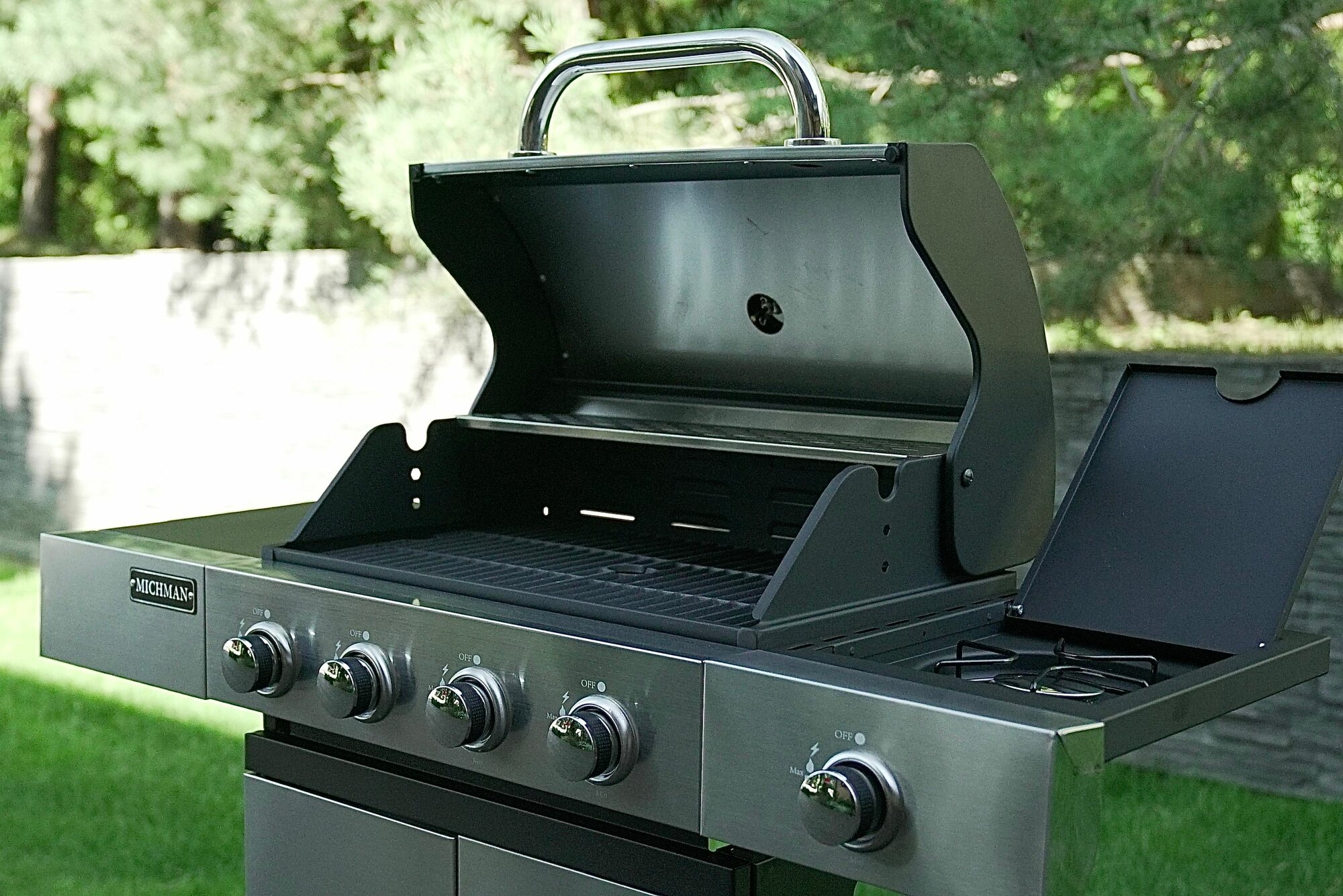 Газовый гриль MICHMAN MG-4K14 с 4 горелками + 1 боковой конфоркой, с автоподжигом, предназначен для приготовления блюд на открытом воздухе. Оптимален для приготовления на компанию из 4-6 человек.