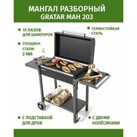 Гриль — Мангал Gratar МАН 203, с крышкой барбекю, столиками, на колесах, сталь 2 мм.: сравнение цен, характеристики, фото, актуальное наличие и цены.