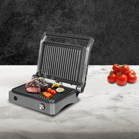 антипригарное покрытие, контактный гриль, поддон для сбора жира, регулировка высоты верхней панели, решетка, съемные пластины