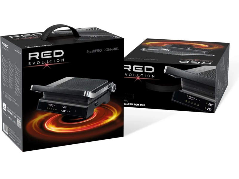 Электрогриль со съемными панелями модели SteakPRO RGM-M81 от бренда RED Evolution станет незаменимым кухонным инвентарем для любителей сочных стейков. Это прибор 3 в 1: прижимной гриль раскладывается на 180°, и получается барбекю-жаровня, а если использовать специальный противень или фольгированную форму (не входят в комплект), то в нем можно запекать блюда как в настоящей духовке! Домашний гриль-пресс имеет 5 программ, благодаря которым вы сможете настроить комфортную температуру для готовки. Антипригарное покрытие панелей позволит исключить вероятность прилипания или пригорания вашей еды. На домашнем мультигриле можно приготовить рыбу, мясо, колбаски, овощи, сэндвичи и даже шаурму. Панели бытового прижимного гриля легко снимаются и без труда моются как вручную, так и в посудомоечной машине. Весь жир от приготовления будет скапливаться в специальном поддоне - он нужен не только для того, чтобы мини-гриль оставался чистым, но ещё и для предотвращения вспыхивания от жира, стекающего на раскаленную поверхность. Этот электрический гриль можно использовать не только в домашних условиях, но ещё и на природе, где есть подключение к сети 220В. Он поможет заменить мангал, экономя время, которое бы вы потратили на розжиг. Электрогрильница не займёт много места при хранении или транспортировке. У данной техники для кухни есть световые индикаторы, информирующие о включении и нагревании. Размер рабочей поверхности составляет 29х21,2 см, нагрев происходит с двух панелей сразу. Максимальный температурный режим – 230 градусов. Черный сетевой шнур имеет длину 0,8 м. Такая техника для приготовления станет отличным подарком для любителя барбекю в домашних условиях – папе, маме, брату, сестре, дедушке, бабушке, мужу, жене. Книга рецептов в комплекте.