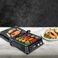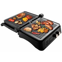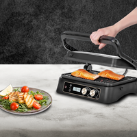 антипригарное покрытие, контактный гриль, поддон для сбора жира, регулировка высоты верхней панели, решетка, съемные пластины