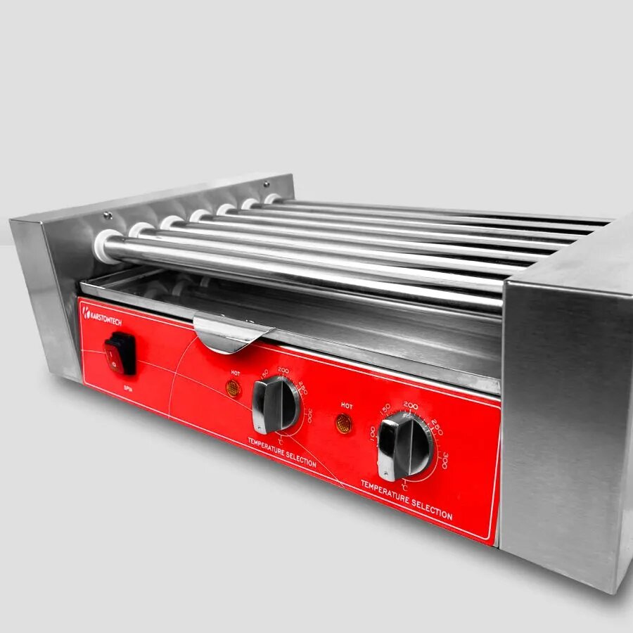 Гриль роликовый KARSTONTECH KS-RG07. для хот-догов, 7 роликов, 2 зоны нагрева, регулировка температуры: сравнение цен, характеристики, фото, актуальное наличие и цены.