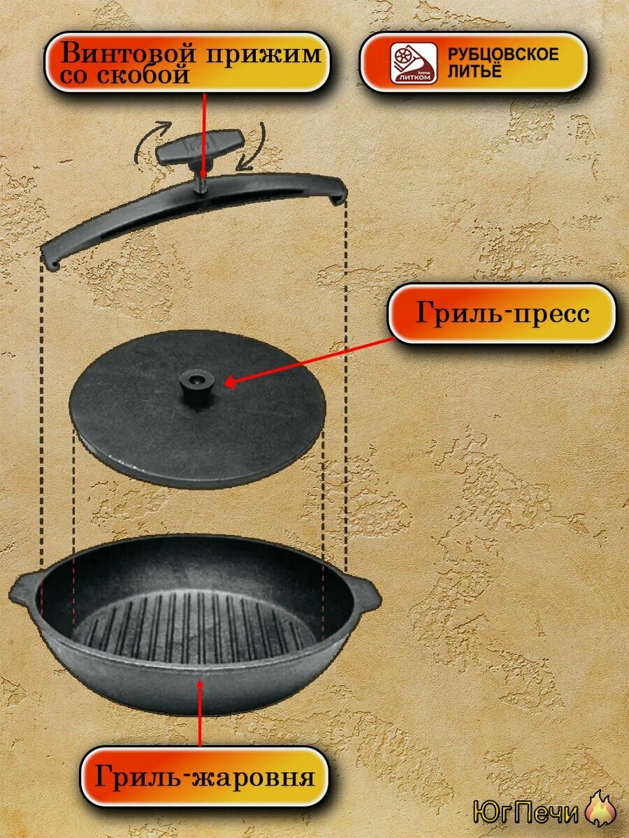 Купить Гриль-жаровня чугунная с прессом «Сибирячка», Рубцовское литье с доставкой по всей России. Гриль-жаровня чугунная с прессом «Сибирячка», Рубцовское литье: сравнение цен, характеристики, фото, актуальное наличие и цены.