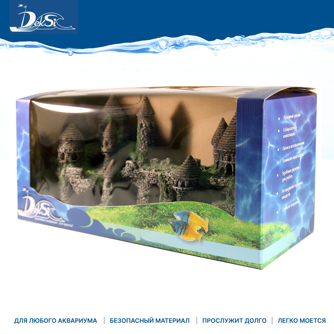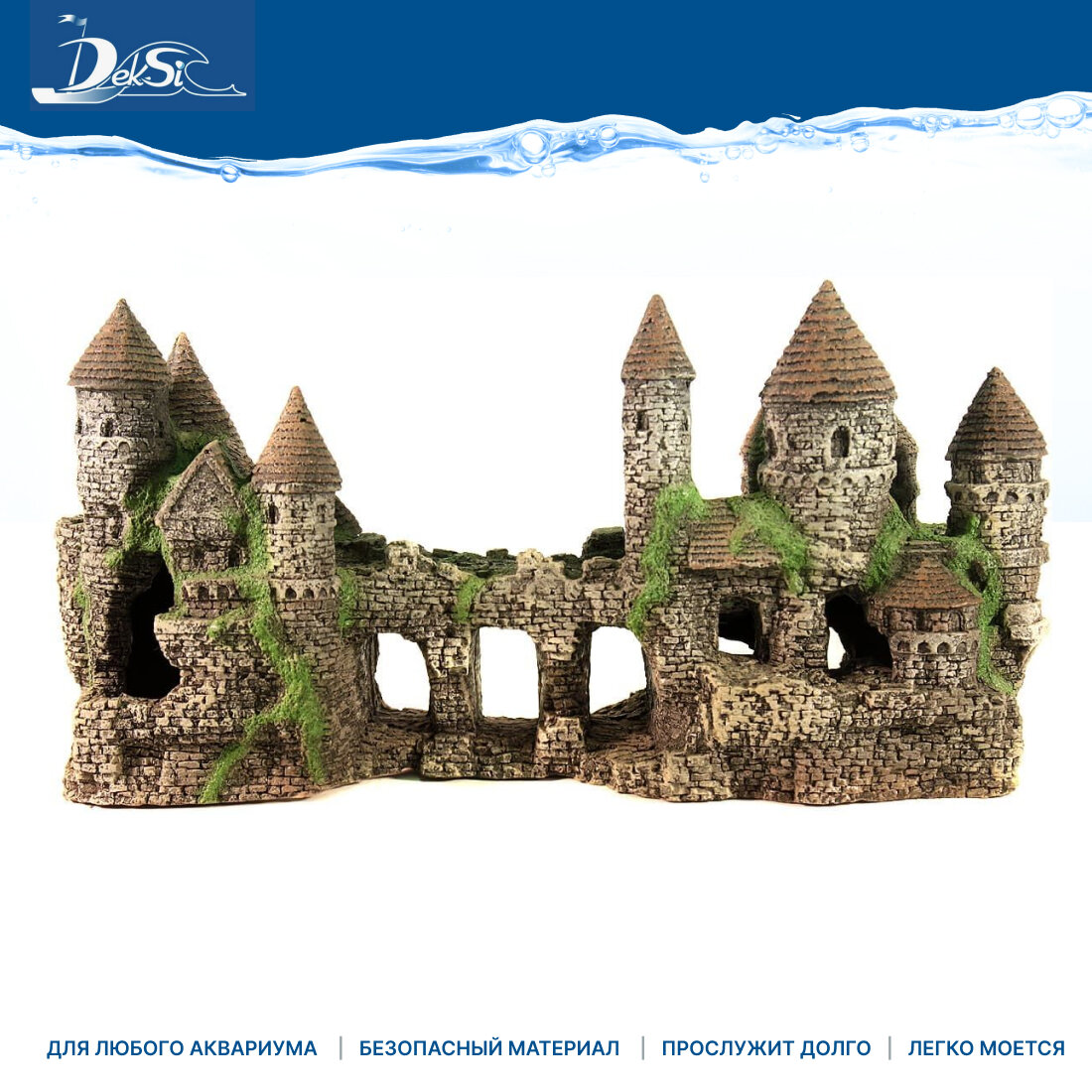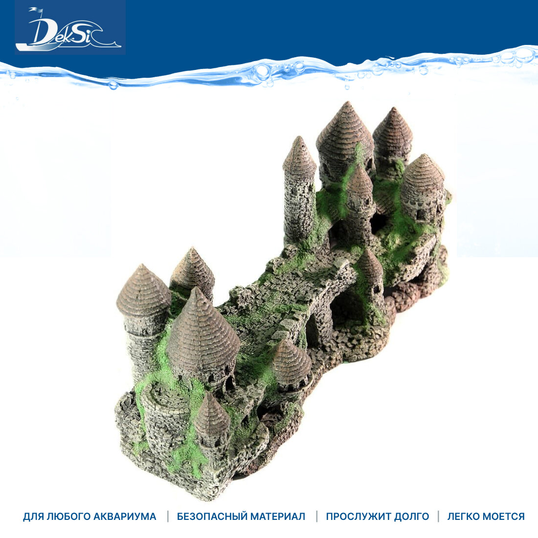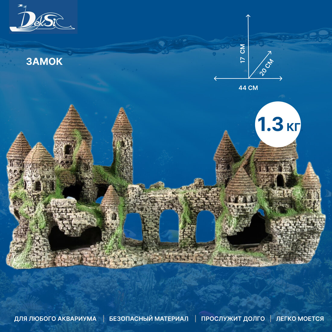 Грот "DEKSI" - Замок пластиковый №104 Пластиковая декорация для использования в аквариумистике и фитодизайне. Гроты для аквариума компании DEKSI выглядят натуральными и естественными благодаря хорошо подобранной цветовой палитре и фактуре. Изделия не токсичны, не тускнеют и не теряют цвета. Декорации DEKSI долговечны и прочны, не изменяют параметры воды и абсолютно безвредны для аквариумных обитателей. Просты в использовании, их удобно доставать из аквариума и легко мыть, они не требуют предварительной подготовки перед установкой в аквариум, хорошо тонут и не всплывают. Размеры (ДхШхВ) - 435х165х200 мм. Производство: Россия, Барнаул.