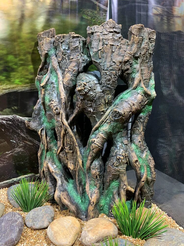 Ни один речной биотоп не обходится без прибрежных коряг. В них рыбки обретают убежище, нерестятся и кормятся. Аквариумная декорация Коряга №702 прекрасно подойдёт для оформления аквариума в натуралистичном стиле. В отличии от природных коряг, искуственные коряги не требуют никакой подготовительной обработки перед помещением в аквариум. Серия объемных декораций «Коряги» состоит из коряг семи разных размеров, что позволяет сделать отличную композицию в аквариуме. Дополняют серию односторонние декоративные элементы, а также маскирующие элементы, что существенно расширяет композиционные возможности при оформлении аквариума. С аквариумными корягами при оформлении аквариума в натуралистичном стиле отлично сочетаются камни. Коряги для аквариума «Декси» долговечны, высокопрочны, не изменяют характеристики воды, совершенно безвредны для аквариумных рыбок. Коряги «Декси» удобно доставать из аквариума и легко мыть.