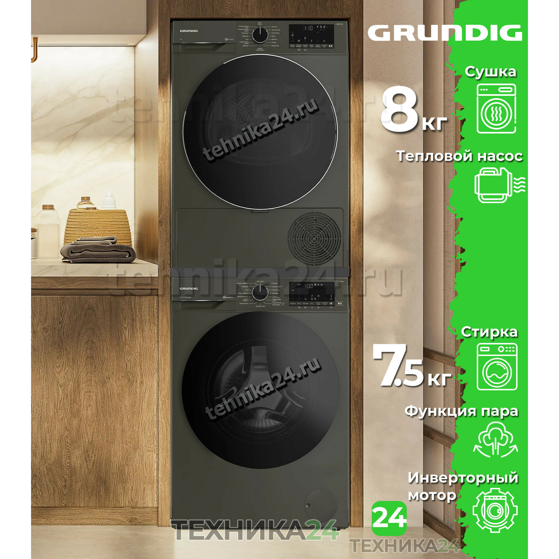 Купить Grundig комплект для установки в колонну Стиральная машина GW5P57H21М + Сушильная машина с тепловым насосом GT55724M + Соединительный элемент с доставкой по всей России.