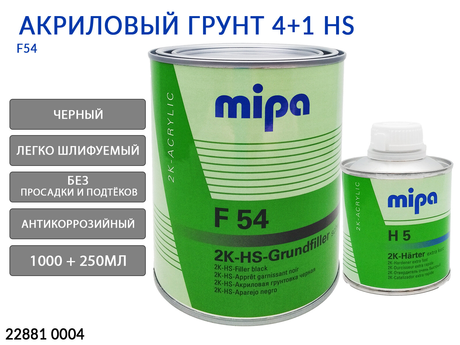 Купить Грунт 4+1 черный F54 HS акриловый с отвердителем MIPA (1л+0,25л) с доставкой по всей России. Грунт 4+1 черный F54 HS акриловый с отвердителем MIPA (1л+0,25л): сравнение цен, характеристики, фото, актуальное наличие и цены.