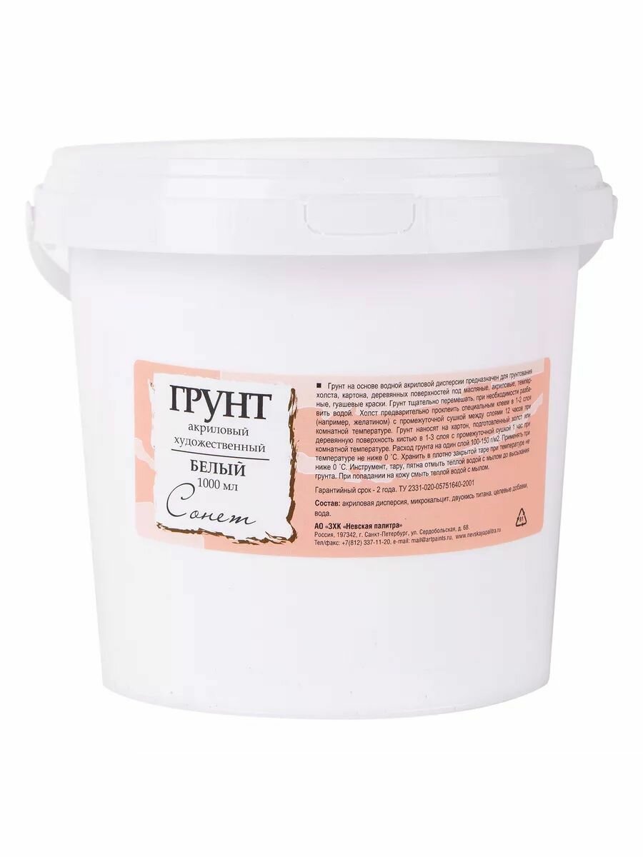 Белый акриловый грунт «Сонет» – прекрасная основа для подготовки поверхности к декорированию, декупажу или работе с красками. Сделан он на основе водной акриловой дисперсии, что позволяет ему прекрасно ложиться на практически любую поверхность. Белый акриловый грунт вы можете использовать и для работы по дереву, и для покрытия холста, картона или гипса.