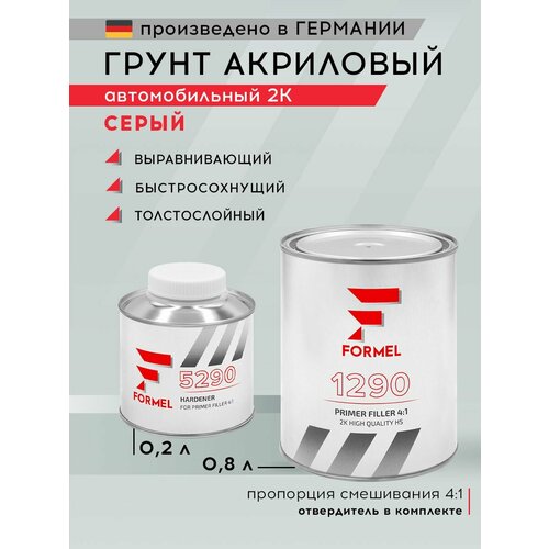 Купить Грунт автомобильный акриловый HS 2K 4:1 серый 0,8 л + 0,2 л отвердитель, толстослойный, выравнивающий / FORMEL 1290 PRIMER FILLER / двухкомпонентная грунтовка с доставкой по всей России. Грунт автомобильный акриловый HS 2K 4:1 серый 0,8 л + 0,2 л отвердитель, толстослойный, выравнивающий / FORMEL 1290 PRIMER FILLER / двухкомпонентная грунтовка: сравнение цен, характеристики, фото, актуальное наличие и цены.
