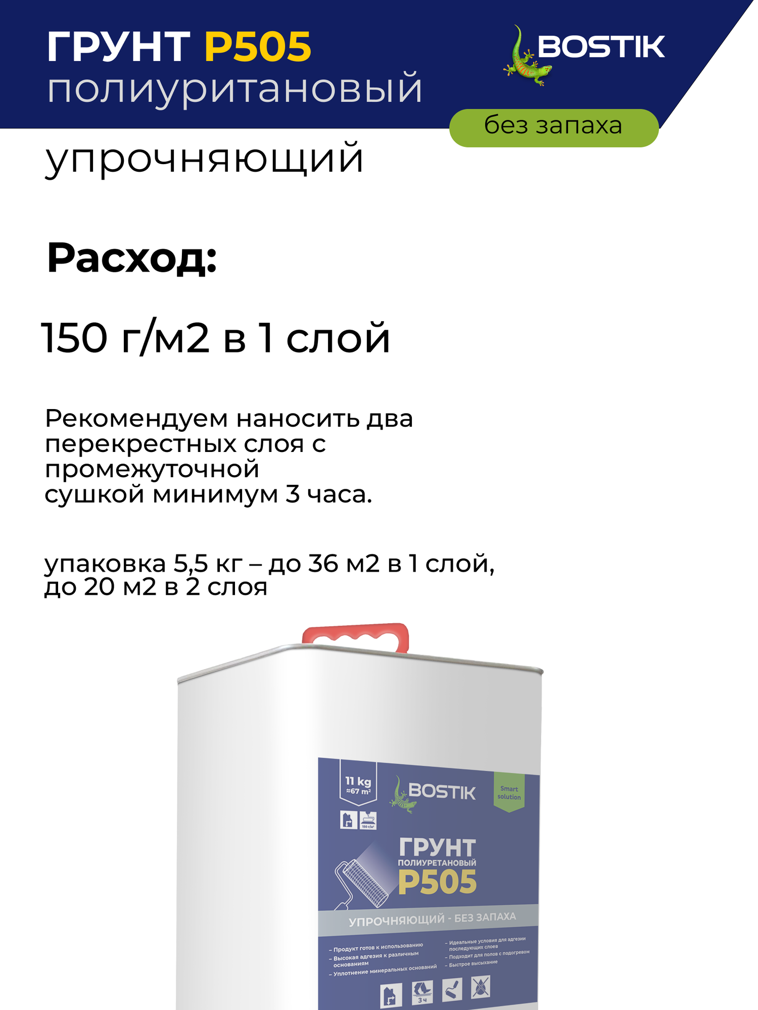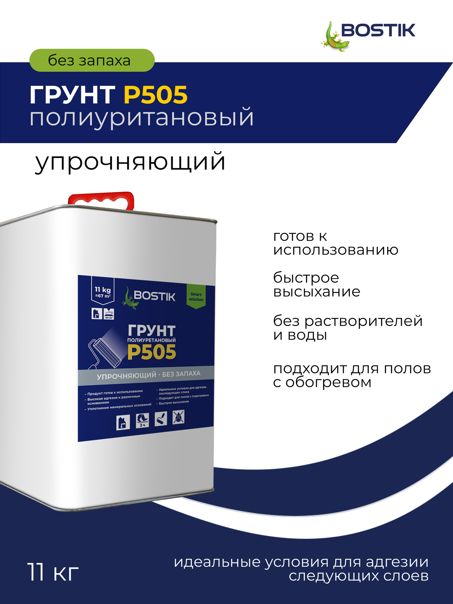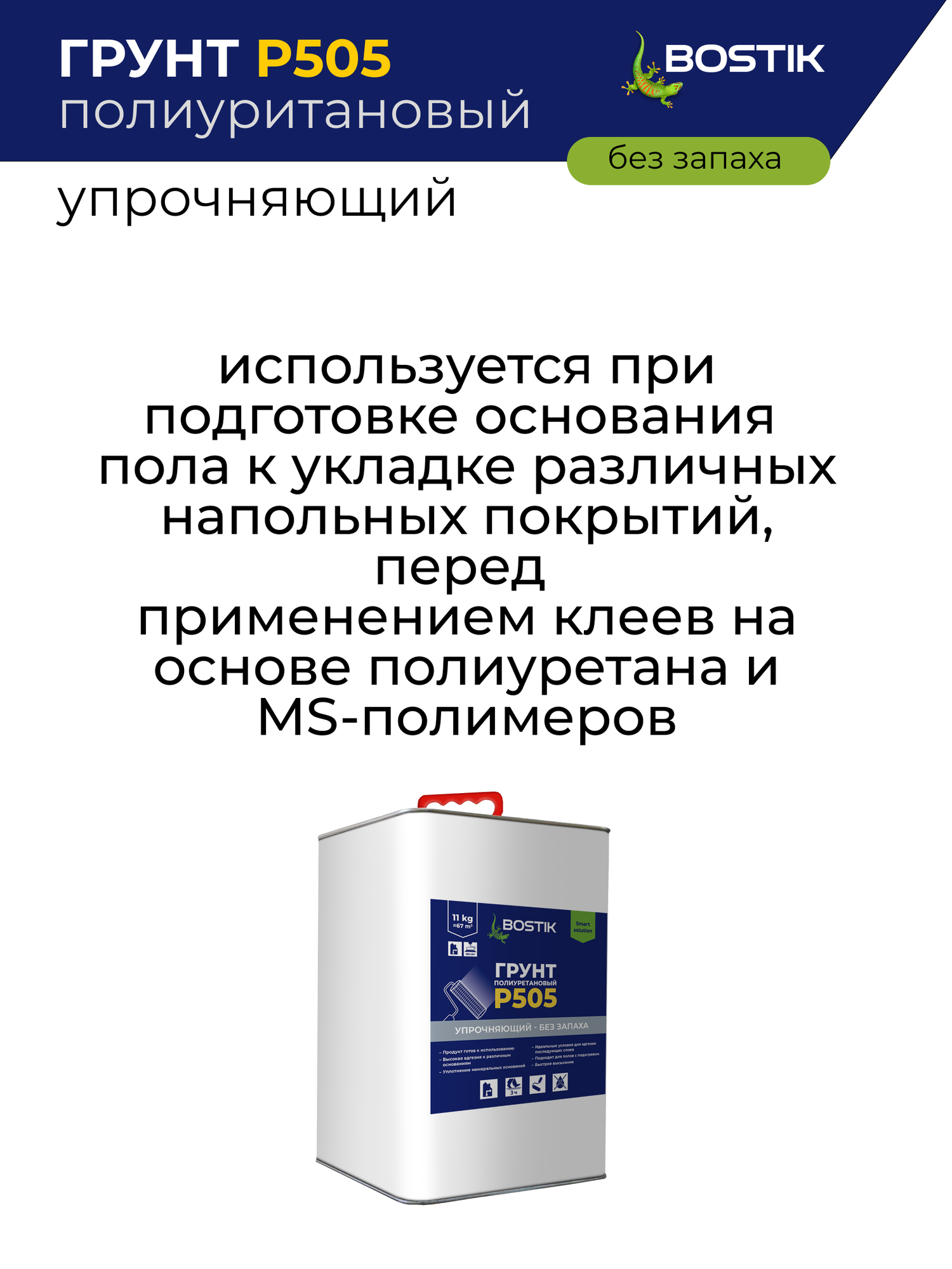 Грунт Bostik «P505», полиуретан, укрепляющий, без запаха, 11 кг, арт 50015816: сравнение цен, характеристики, фото, актуальное наличие и цены.