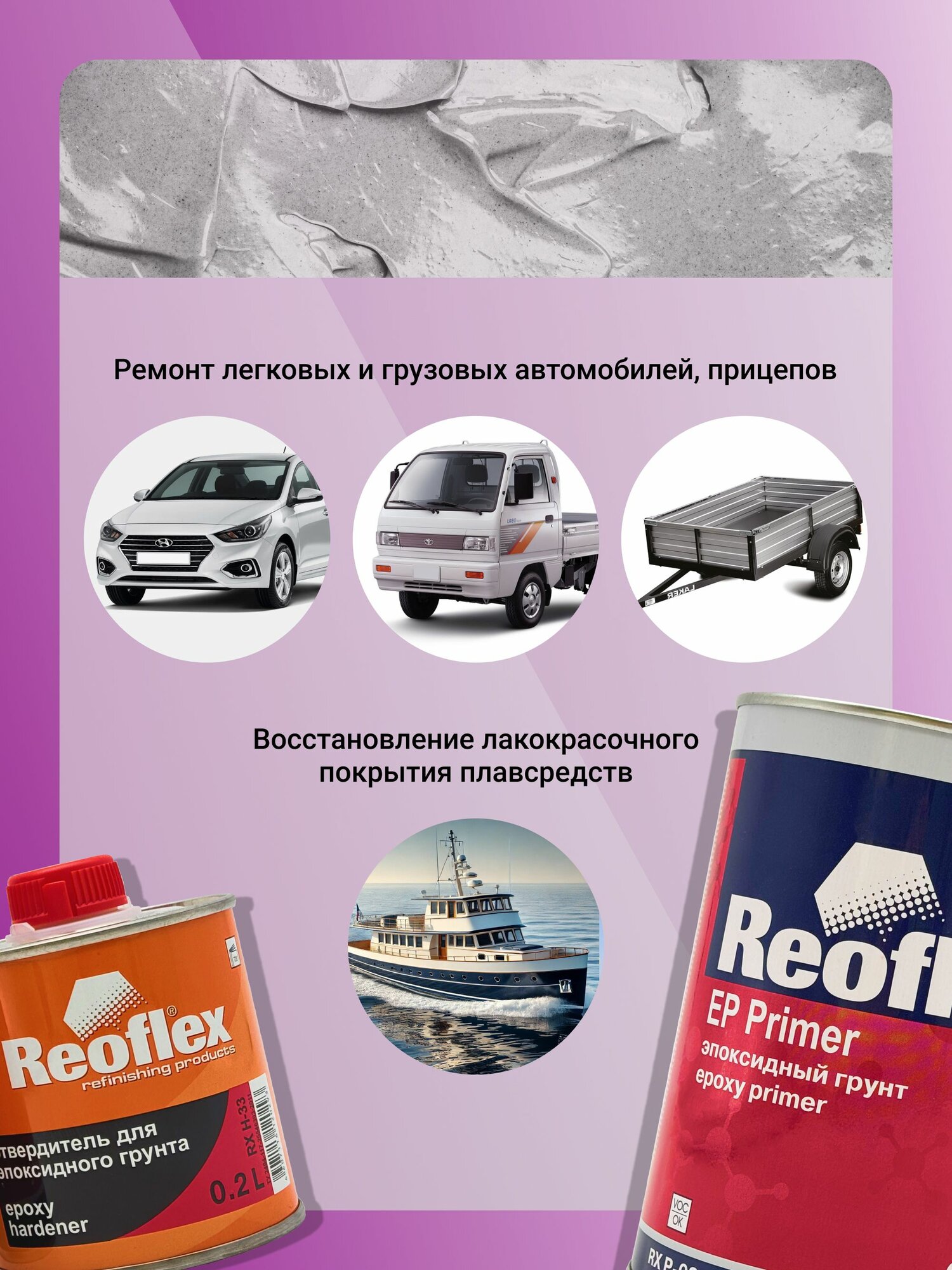 | Назначение | антикоррозийная защита, выравнивание поверхности, выявление неровностей, заполнение царапин и сколов, подготовка под покраску, усиление адгезии |