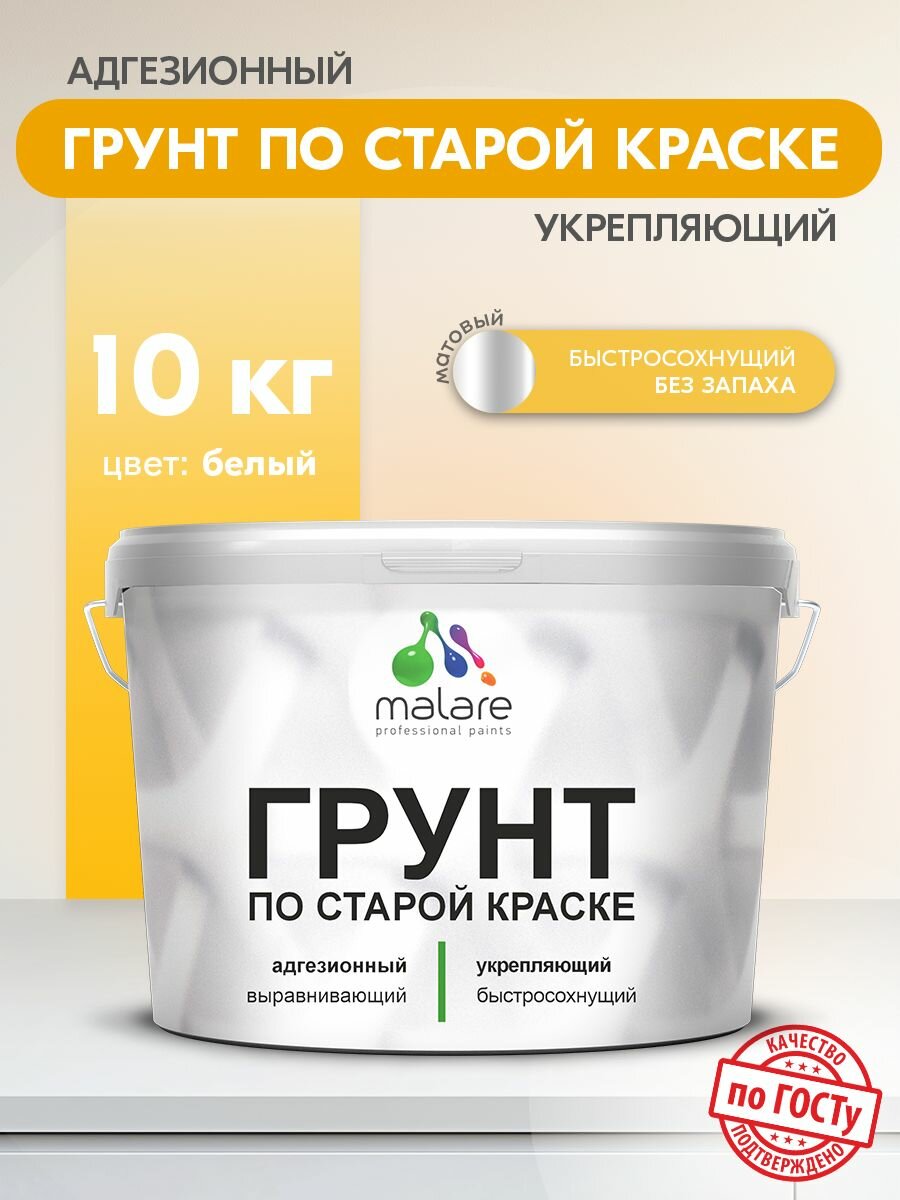 Грунт по старой краске Malare акриловый адгезионный универсальный, без запаха быстросохнущий, белый, 10 кг.: сравнение цен, характеристики, фото, актуальное наличие и цены.