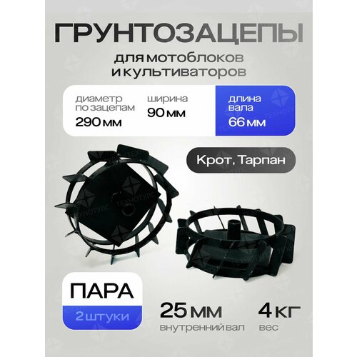 - Точная совместимость: Конструкция с внутренним валом 25 мм и длиной ступицы 66 мм разработана для корректной установки на культиваторы Крот и Тарпан. Это классические грунтозацепы для мотоблока 25мм вал для данных моделей.