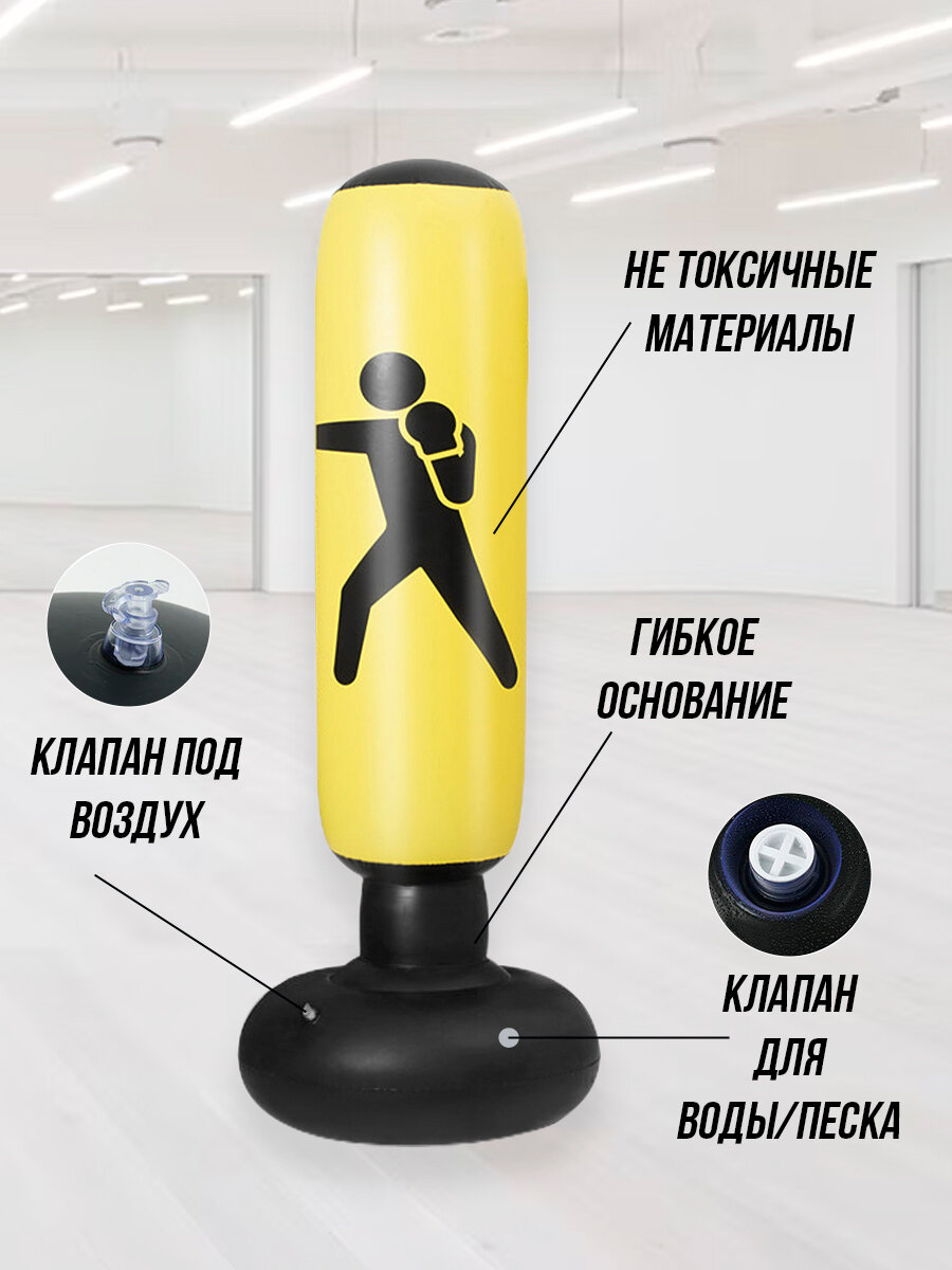 Груша боксерская детская отличный подарок мальчику, девочке или жене.(Всегда поставляется в картонной упаковке). Груша боксерская взрослая подходит для отработки ударов. Груша напольная боксерская повышает координацию, ловкость, выносливость. Боксерская груша напольная помогает сжечь калории. Высота у боксерская груша детская составляет 160 см что подходит в бокс для девочек 10 лет. Мешок боксерский устойчив на поверхности. Изготовлен из не токсичных материалов. Боксерский мешок применим бокс, кикбоксинг, карате, тхэквондо и другие виды спорта. Предназначение как детская груша для бокса. Груша резиновая состоит из пвх и используется как игра бокс для детей. Так же баксерская груша иногда называется как спортивный мешок. Груши спортивные легко надуть и также спортивная груша легко сдувается и не занимает много места дома. Боксерская груша для детей прекрасный пробник на пути в большой спорт вашего ребенка. Груша спортивная это начало на пути самоутверждения нашего чадо.