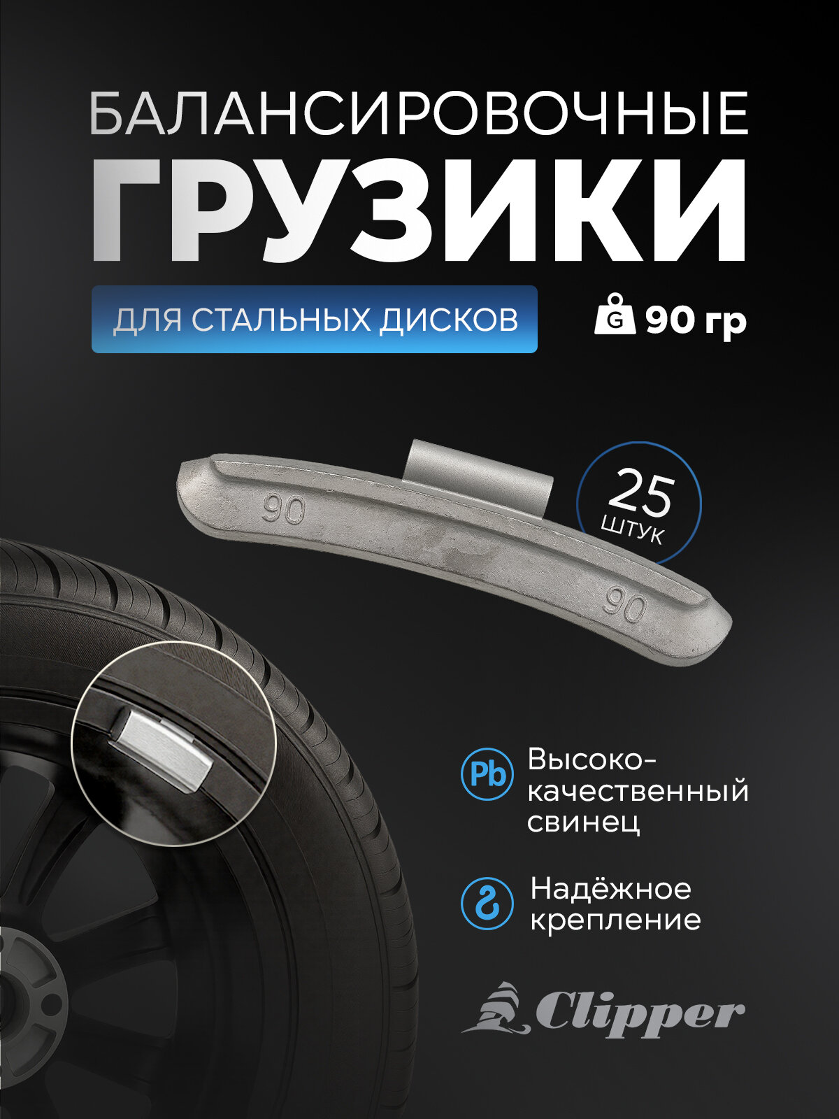 Грузики балансировочные для стальных дисков Clipper 90гр. (25 шт): сравнение цен, характеристики, фото, актуальное наличие и цены.