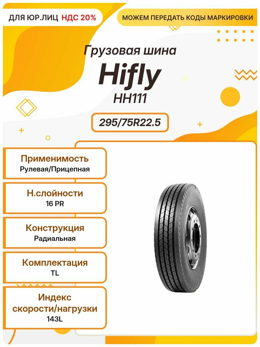 Грузовая шина HIFLY HH111, 295/75R22.5, 143L, TL, Рулевая/Прицепная: сравнение цен, характеристики, фото, актуальное наличие и цены.