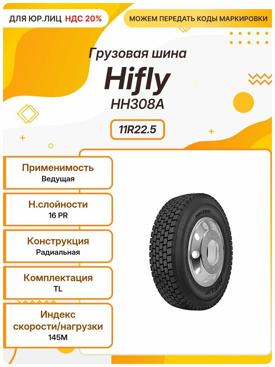 Грузовая шина HIFLY HH308A, 11R22.5, 145M, TL, Ведущая: сравнение цен, характеристики, фото, актуальное наличие и цены.