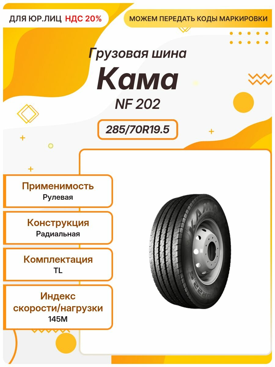 Купить Грузовая шина Кама NF 202, 285/70R19.5, 145M, TL, Рулевая с доставкой по всей России. Грузовая шина Кама NF 202, 285/70R19.5, 145M, TL, Рулевая: сравнение цен, характеристики, фото, актуальное наличие и цены.