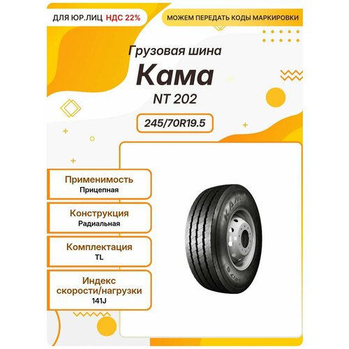 Грузовая шина Кама NT 202, 245/70R19.5, 141J, TL, Прицепная: сравнение цен, характеристики, фото, актуальное наличие и цены.