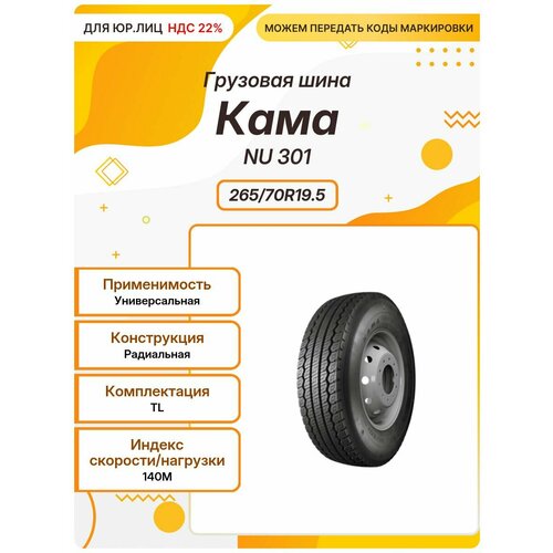 Грузовая шина Кама NU 301, 265/70R19.5, 140M, TL, Универсальная: сравнение цен, характеристики, фото, актуальное наличие и цены.