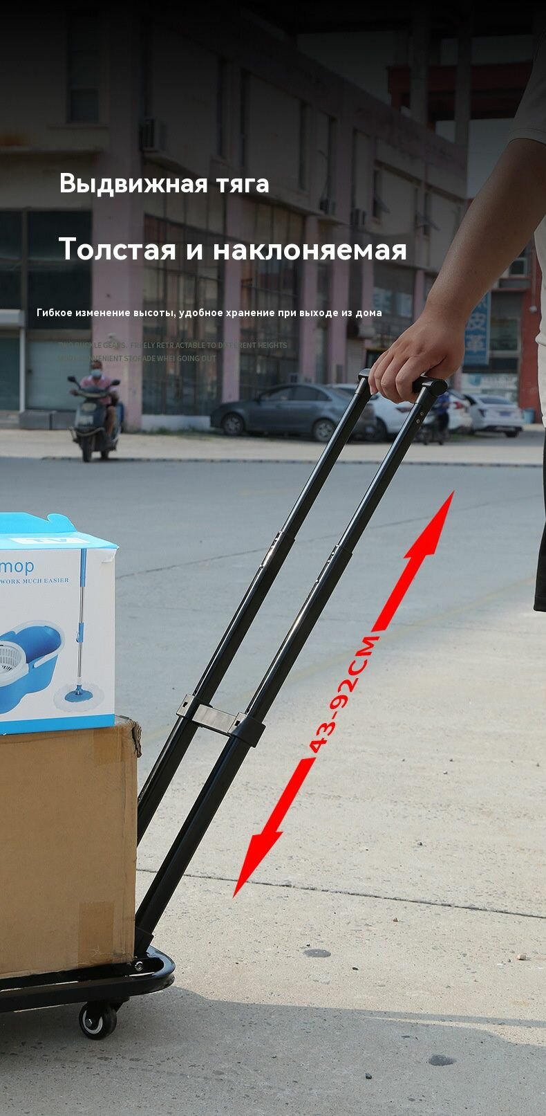 Представляем надежную и маневренную 6-колесную грузовую тележку – вашего незаменимого помощника для перевозки тяжестей в любых условиях! Почему именно 6 колес? Максимальная устойчивость и баланс: Равномерное распределение нагрузки даже на неровных поверхностях (гравий, брусчатка, трава, ступеньки). Риск опрокидывания минимален! Плавность хода: Легкое преодоление препятствий и стыков. Повышенная грузоподъемность: Конструкция с 6 точками опоры надежно выдерживает значительный вес. Ключевые преимущества и характеристики: Регулируемая высота ручки (43-92 см): Легко подстраивается под рост любого пользователя (от 160 см до 190+ см), обеспечивая эргономичную и комфортную транспортировку без необходимости наклоняться. Больше никакой боли в спине! Прочная стальная конструкция: Рама из качественной стали обеспечивает долговечность и выдерживает заявленную грузоподъемность 150 кг Удобная платформа: Размеры 37 см (ширина) x 53 см (длина). Оптимальный размер для размещения коробок, мешков, стройматериалов, садового инвентаря, крупногабаритных предметов. Складная конструкция: Легко складывается за несколько секунд! Значительно экономит место при хранении в гараже, кладовке или багажнике автомобиля. Удобная ручка: Эргономичная, прорезиненная или с удобным захватом для надежного управления. Идеальное применение: Склад и логистика: Перемещение коробок, товаров, упаковок. Сад и огород: Перевозка земли, компоста, растений, дров, садового инструмента. Строительство и ремонт: Транспортировка мешков со смесями, плитки, инструмента, мусора. Переезды: Упрощение переноса коробок и мебели (в пределах возможностей тележки). Дача и частный дом: Разнообразные хозяйственные нужды. Торговля: Внутримагазинная транспортировка товаров. Коммунальные службы. Превратите тяжелую работу в легкую задачу с нашей 6-колесной тележкой! Купите сегодня и ощутите разницу в удобстве и надежности!