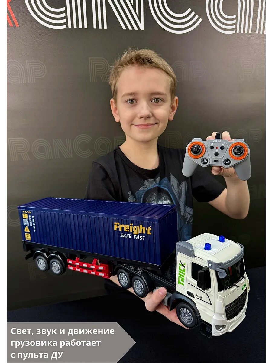 Купить Радиоуправляемый грузовик фура с прицепом большой строительный на пульте управления, детская спецтехника для мальчиков с доставкой по всей России.