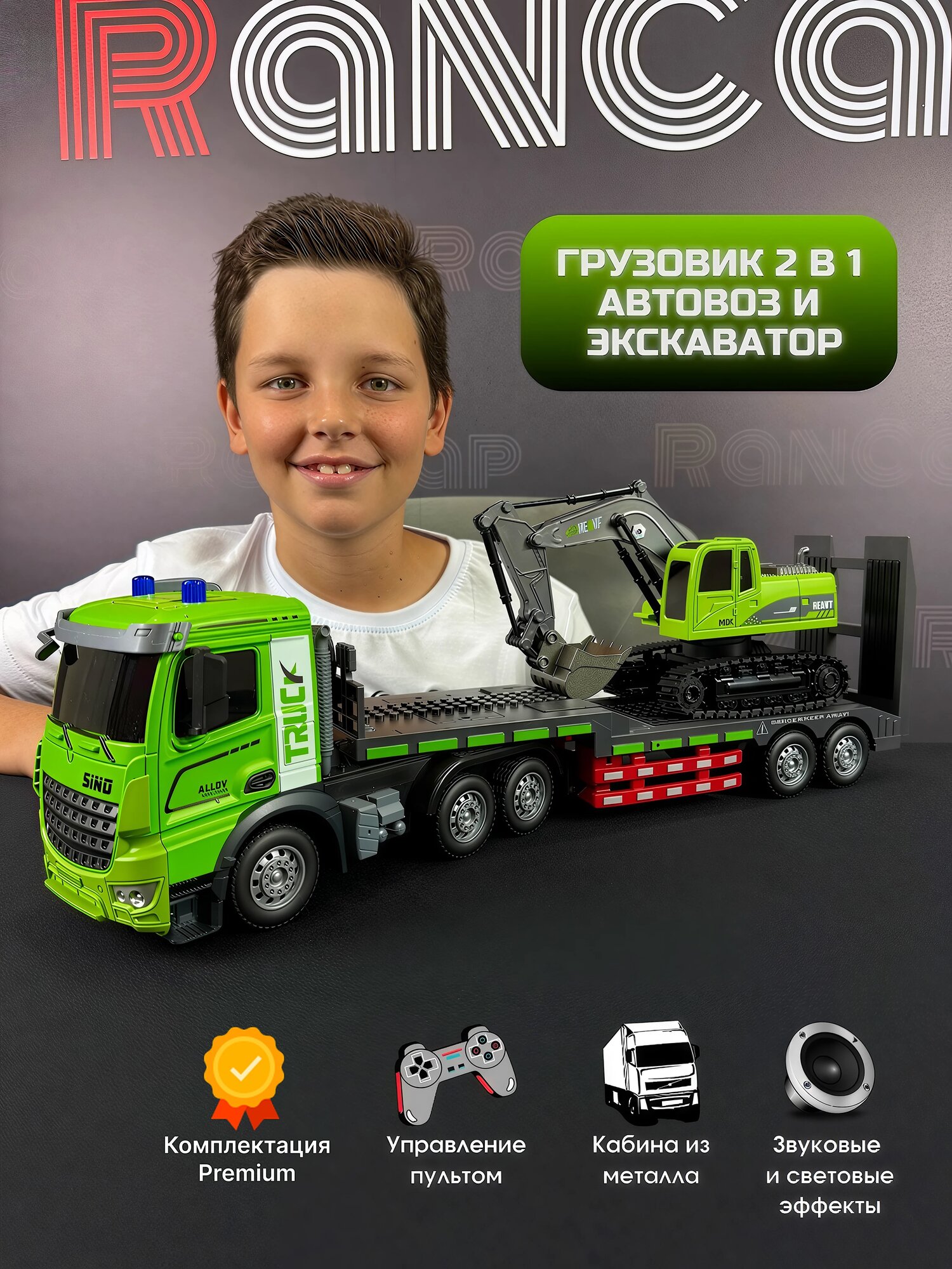 Радиоуправляемый набор строительной техники 2 в 1: грузовик автовоз и экскаватор — идеальный подарок для мальчиков, которые обожают спецтехнику и мечтают о профессии строителя. Этот большой набор включает полнофункциональные модели в масштабе 1:12: металлический автовоз с машинками и экскаватор для песочницы.