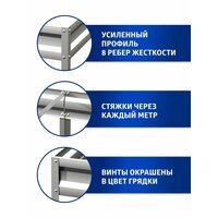 В комплект входят все необходимые элементы: уголки, стяжки, профиль и крепёжные болты. Завальцованные края обеспечивают безопасность. Высокие грядки способствуют лучшей аэрации почвы и защищают корни от заморозков и переувлажнения.