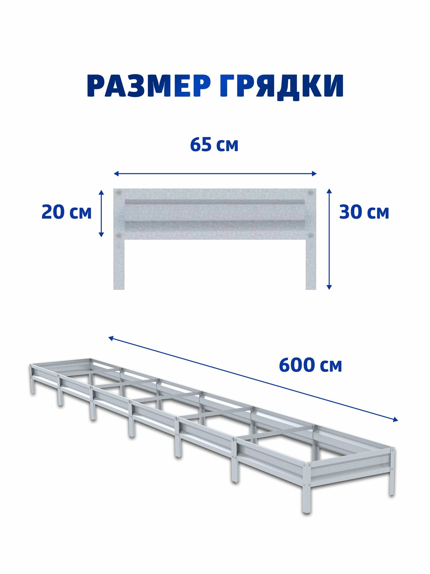 Грядка оцинкованная — надёжное и функциональное решение для дачи и сада, сочетающее функциональность и красивый садовый декор. В ассортименте представлены готовые грядки из металла прямоугольной формы шириной 0,65 м, 0,8 м и 1 м, длиной 2 м, 3 м, 4 м, 5 м, 6 м и высотой борта 15 или 20 см. Простая сборка и устойчивость делают их удобными для грядок в теплицу и для огорода, обеспечивая комфортное выращивание растений.