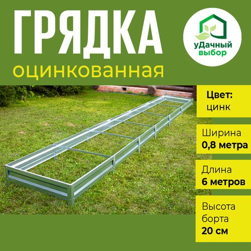 Грядка садовая оцинкованная 6 метров. Размеры каркаса грядки 0,8х6 метров и высота борта 20 см. Идеальна для дачи, сада и огорода, подходит для теплиц и для открытого грунта. Садовые металлические грядки используются для формирования ровных грядок и отлично смотрятся на участке. Шестиметровая грядка усилена четырьмя стяжками(через каждый метр). Оцинкованная сталь не подвергается коррозии. Срок службы более 10 лет. Грядка экономит воду при поливе, увеличивает урожай, сохраняет тепло, уменьшает количество сорняков, придает участку опрятный вид. Грядка легко собирается и устанавливается. Весь необходимый крепёж и инструкция с картинками – в комплекте. Подходит для выращивания любых растений: овощи, фрукты, злаки, зелень, ягоды, цветы. Высота борта грядки - 20 см. За высокими грядками проще ухаживать, их удобнее поливать - грядка выше уровня земли, что значительно упрощает процесс прополки. В готовых грядках 6 м на ножках быстрее прогревается почва и корни растений защищены от резких изменений температуры. Стойкое покрытие не выделяет вредных веществ, не выцветает и не выгорает на солнце, надежное и экологичное. Грядка не боится жары, мороза, оледенения, солнца, снега, дождя. Нет острых краев (все края завальцованы). Упаковка грядки гарантирует защиту покрытия при транспортировке. Так же в ассортименте нашего магазина есть красивые оцинкованные 3-х ярусные клумбы (альпийская горка), клумбы с полимерным покрытием, а так же грядки различных размеров и комплекты грядок в теплицу. Произведено в России.