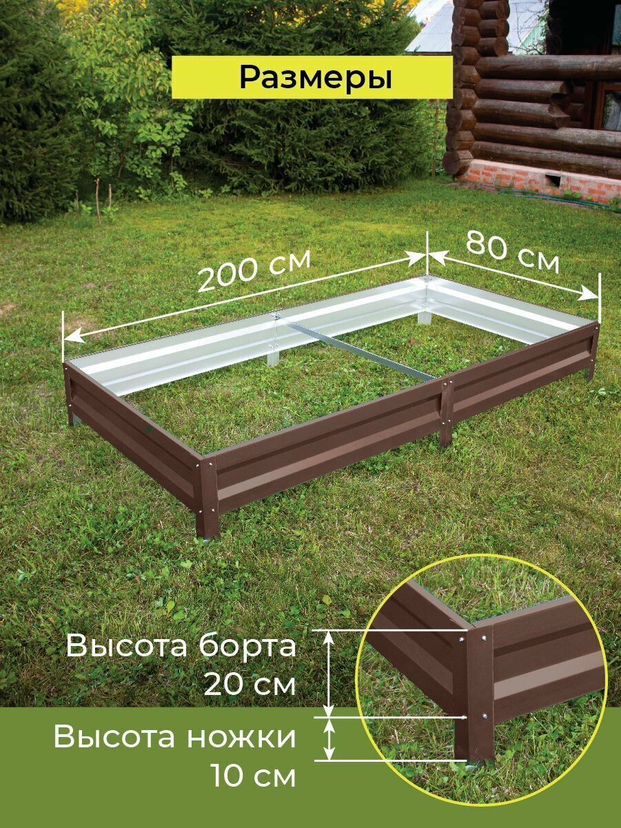Грядка садовая оцинкованная с полимерным покрытием 2 метра. Размеры каркаса грядки 0,8х2 метра и высота борта 20 см. Идеальна для дачи, сада и огорода, подходит для теплиц и для открытого грунта. Садовые металлические грядки используются для формирования ровных грядок и отлично смотрятся на участке. Двухметровая грядка усилена одной стяжкой посередине. Оцинкованная сталь с полимерным покрытием не подвергается коррозии. Срок службы более 10 лет. Грядка экономит воду при поливе, увеличивает урожай, сохраняет тепло, уменьшает количество сорняков, придает участку опрятный вид. Грядка легко собирается и устанавливается. Весь необходимый крепёж и инструкция с картинками – в комплекте. Грядка подходит для выращивания любых растений: овощи, фрукты, злаки, зелень, ягоды, цветы. Высота борта грядки - 20 см. За высокими грядками проще ухаживать, их удобнее поливать - грядка выше уровня земли, что значительно упрощает процесс прополки. В готовых грядках 2 м на ножках быстрее прогревается почва и корни растений защищены от резких изменений температуры. Стойкое покрытие не выделяет вредных веществ, не выцветает и не выгорает на солнце, надежное и экологичное. Грядка не боится жары, мороза, оледенения, солнца, снега, дождя. Нет острых краев (все края завальцованы). Упаковка грядки гарантирует защиту покрытия при транспортировке. Так же в ассортименте нашего магазина есть красивые оцинкованные 3-х ярусные клумбы (альпийская горка), клумбы с полимерным покрытием, а так же грядки различных размеров и комплекты грядок в теплицу. Произведено в России.