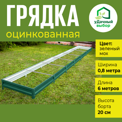 Грядка садовая оцинкованная с полимерным покрытием 6 метров. Размеры каркаса грядки 0,8х6 метров и высота борта 20 см. Идеальна для дачи, сада и огорода, подходит для теплиц и для открытого грунта. Садовые металлические грядки используются для формирования ровных грядок и отлично смотрятся на участке. Шестиметровая грядка усилена пятью стяжками(через каждый метр). Оцинкованная сталь не подвергается коррозии. Срок службы более 10 лет. Грядка экономит воду при поливе, увеличивает урожай, сохраняет тепло, уменьшает количество сорняков, придает участку опрятный вид. Грядка легко собирается и устанавливается. Весь необходимый крепёж и инструкция с картинками – в комплекте. Подходит для выращивания любых растений: овощи, фрукты, злаки, зелень, ягоды, цветы. Высота борта грядки - 20 см. За высокими грядками проще ухаживать, их удобнее поливать - грядка выше уровня земли, что значительно упрощает процесс прополки. В готовых грядках 6 м на ножках быстрее прогревается почва и корни растений защищены от резких изменений температуры. Стойкое покрытие не выделяет вредных веществ, не выцветает и не выгорает на солнце, надежное и экологичное. Грядка не боится жары, мороза, оледенения, солнца, снега, дождя. Нет острых краев (все края завальцованы). Упаковка грядки гарантирует защиту покрытия при транспортировке. Так же в ассортименте нашего магазина есть красивые оцинкованные 3-х ярусные клумбы (альпийская горка), клумбы с полимерным покрытием, а так же грядки различных размеров и комплекты грядок в теплицу. Произведено в России.