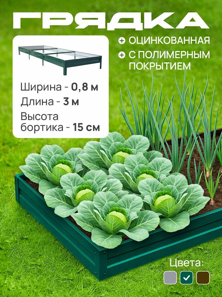 Грядка оцинкованная с полимерным покрытием 0,8х3,0 м, высота 15 см, Цвет: Зеленый мох: сравнение цен, характеристики, фото, актуальное наличие и цены.