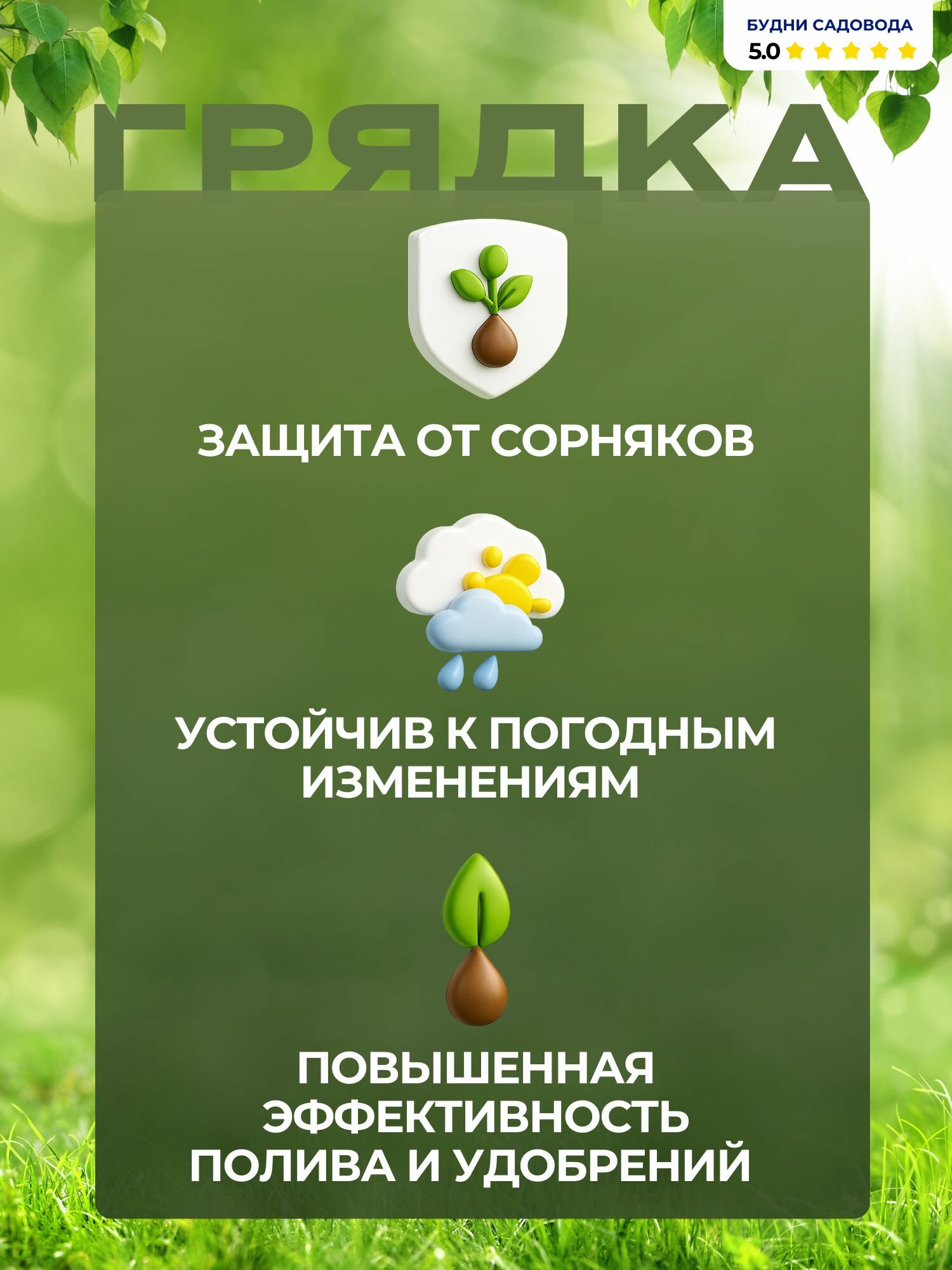 Подходит для теплиц, парников и открытого грунта. Простая сборка без инструментов занимает не более 10 минут. Не требует фундамента. Сделано в России. Соответствует ГОСТ. Характеристики: * Толщина металла: 0.5 мм * Количество рёбер жёсткости: 12 * Преимущества: * Срок службы до 20 лет * Оцинкованная сталь + полимерное покрытие * Защита от влаги, коррозии, температур * Не распирается, не гнётся * Безопасные загнутые края * Быстрая сборка без шуруповёрта * Упрощает уход за растениями и полив * Эта оцинкованная грядка с полимерным покрытием — не просто каркас, а полноценная система организации участка. Она поможет вам вырастить аккуратные, ухоженные посадки с минимумом усилий и максимумом пользы.