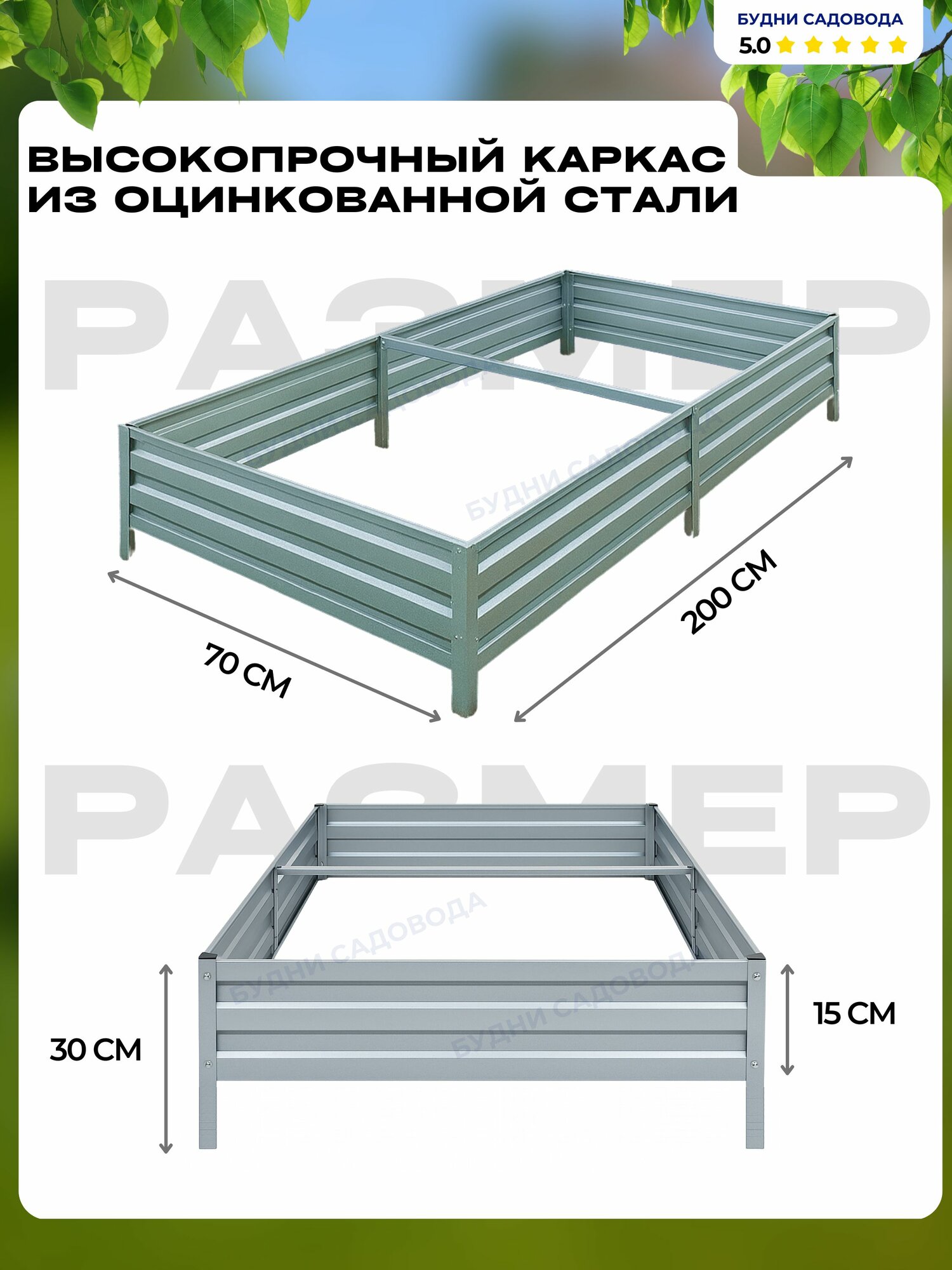 Оцинкованная усиленная грядка 2 м × 0.7 м × 15 см — идеальное решение для огорода.