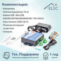 - контроллер - антенна привертная 10см - кабель USB \ Mini USB - WAVER USB PROGRAMMER REV: FW-USB-02 - блок питания 220В/12В 1А - подробная печатная инструкция на русском - драйверы, программное обеспечение, примеры (zip) - видеоинструкция по настройке со смартфона (YouTube) - инструкция по настройке и управлению с компьютера (pdf) - схемы подключения