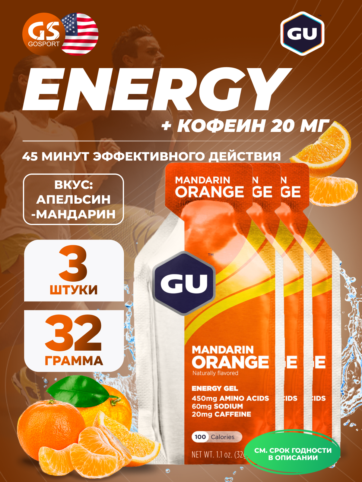 GU ENERGY GU Original Energy Gel 20mg caffeine 3 x 32 г, Апельсин-Мандарин: сравнение цен, характеристики, фото, актуальное наличие и цены.