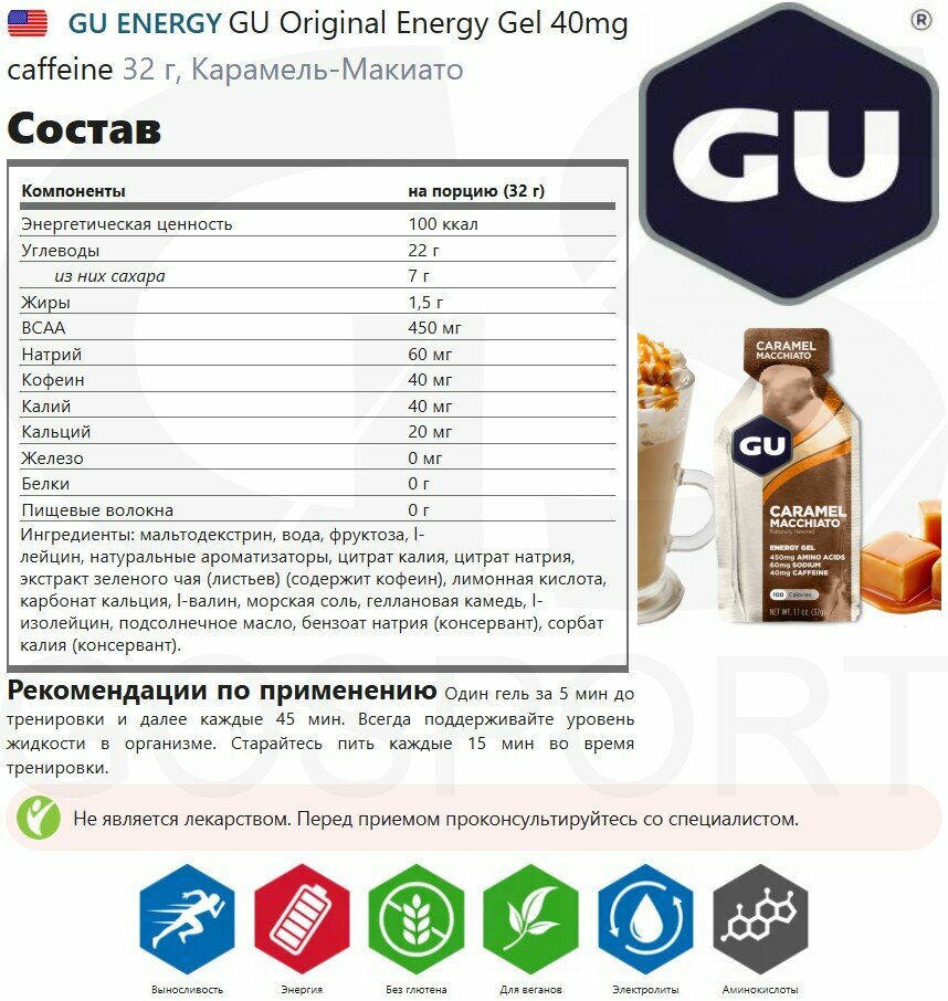 GU ENERGY GU Original Energy Gel 40mg caffeine 3 x 32 г, Карамель-Макиато: сравнение цен, характеристики, фото, актуальное наличие и цены.