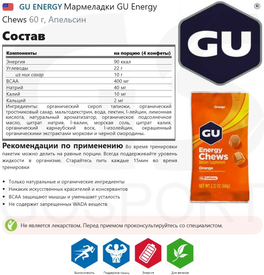 Купить GU ENERGY Мармеладки GU Energy Chews 6 x 60 г, Апельсин с доставкой по всей России. GU ENERGY Мармеладки GU Energy Chews 6 x 60 г, Апельсин: сравнение цен, характеристики, фото, актуальное наличие и цены.