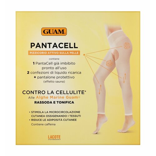 Состав набора: Штаны (тканевые), пропитанные жидкостью интенсивного антицеллюлитного действия с разогревающим эффектом - 1 шт Жидкость для штанов интенсивного антицеллюлитного действия с разогревающим эффектом - 2 пакетика по 100 мл Полиэтиленовые защитные штанишки с эффектом сауны - 1 шт Интенсивный антицеллюлитный курс с эффектом «тепловых волн: тепло/холод» на основе высокой концентрации солей Мёртвого моря, морских водорослей, кофеина и фитоэкстрактов. Pantacell позволяют быстро уменьшить симптомы целлюлита в области проблемных зон ног, бёдер, ягодиц, живота и талии, разгладить, укрепить и подтянуть кожу, повысить её эластичность и упругость, избавиться от дряблости на фоне возрастных изменений, ограничительных диет с резким колебанием веса или после рождения ребёнка. Максимальный результат достигается в течение 35-40 минут. При этом процедура всесезонная, её можно проводить в любое время года. Подходит для всех типов кожи. Антицеллюлитный эффект имеет накопительный характер. Минимальный курс: 6 процедур в течение 14 дней. Противопоказания: беременность, чувствительная кожа с сосудистыми патологиями, индивидуальная непереносимость компонентов. Активные компоненты: • Контрастный комплекс Тепло/холод (метилникотинат, эфир плодов ванили, ментол) - усиливает микроциркуляцию, способствует выведению застойной жидкости и шлаков, восстанавливает водно-солевой баланс в тканях, активизирует метаболизм подкожных липидов, что помогает постепенно уменьшить объемы проблемных зон • Кофеин - усиливает и дополняет дренажное и антицеллюлитное действие. Стимулирует выведение застоявшейся жидкости и шлаков из клеток и тканей кожи. Тонизирует кожу, подтягивает ее, устраняет отечность • Экстракты ламинарии и фукуса пузырчатого - оказывают интенсивное дренажное и детокс-действие, усиливают процесс липолиза, устраняют отёчность. Повышают эластичность соединительнотканных волокон дермы и стимулируют клеточную регенерацию. Укрепляют кожу и предотвращают формирование растяжек, заметно уменьшая их проявление • Соль мертвого моря - стимулирует все жизненно важные биохимические процессы на клеточном уровне. Стимулирует выведение застоявшейся жидкости и шлаков, улучшает кровообращение и ток лимфы. Очищает и дезинфицирует потовые и сальные железы, предупреждая их закупорку • Ферментированный экстракт сои - омолаживает, подтягивает и укрепляет кожу, уменьшая проявления дряблости и стимулируя продуцирование коллагена и гиалуроновой кислоты