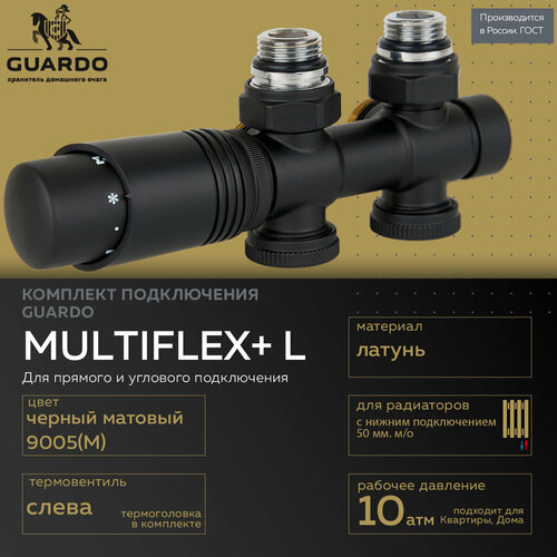 Купить Guardo, угловой комплект для нижнего подключения с термоголовкой слева, латунь, черный матовый, дизайнерский, Guardo Multiflex+ L R9005(M) с доставкой по всей России. Guardo, угловой комплект для нижнего подключения с термоголовкой слева, латунь, черный матовый, дизайнерский, Guardo Multiflex+ L R9005(M): сравнение цен, характеристики, фото, актуальное наличие и цены.